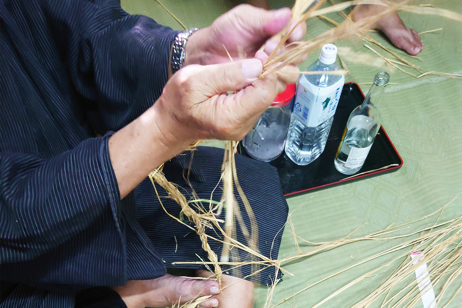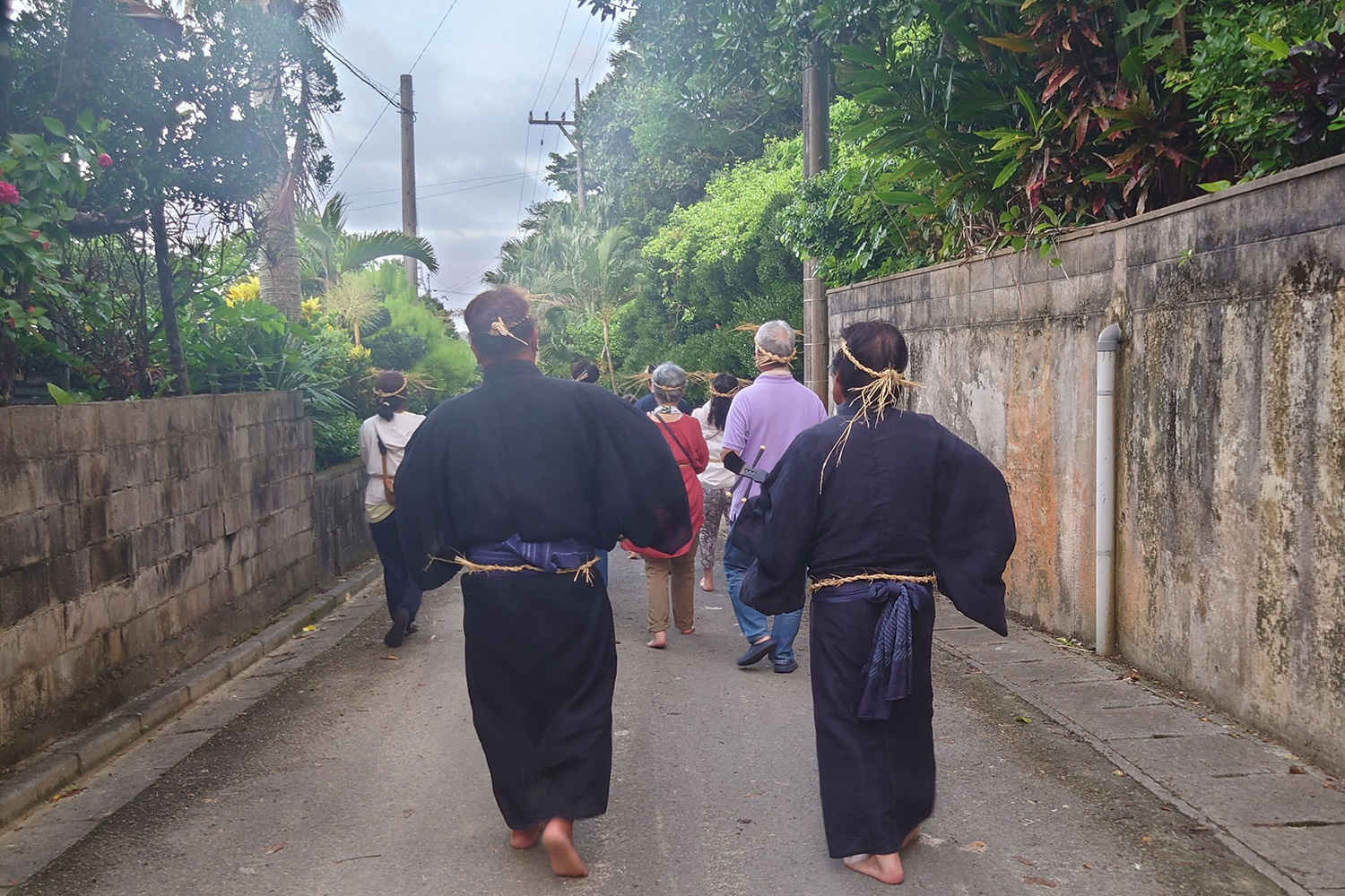 トゥリムトゥ(宗家)に集まり、ワラで作ったワラサー(鉢巻き)とワラシクビ(腰巻き)を装着し、歌と踊りを中心に儀礼をおこないます。