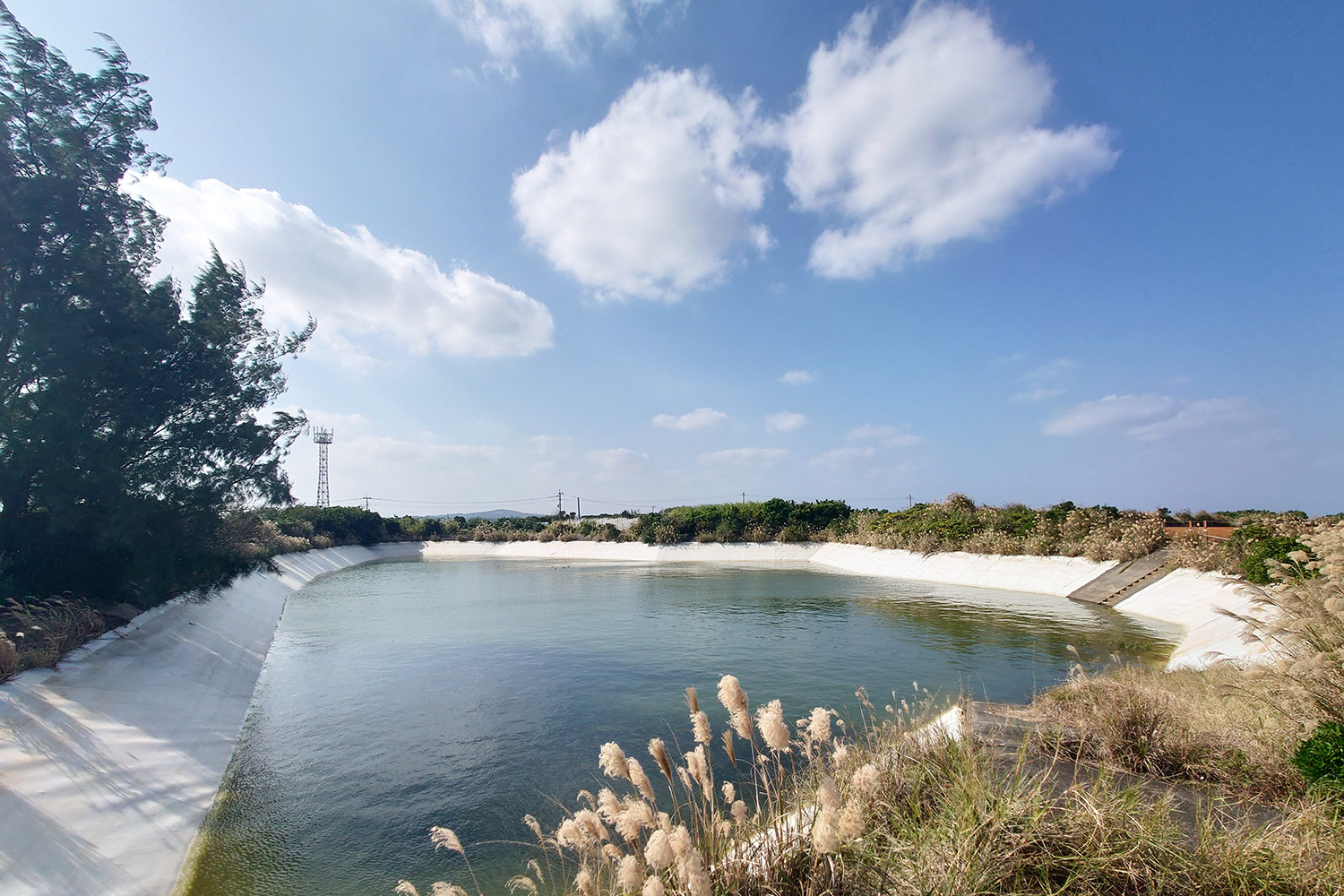 沖永良部島はサンゴ礁が隆起してできた島で、表面は琉球石灰岩に覆われています。この石灰岩はすき間が多いため、雨水が地面にしみ込みやすい特徴があります。そのため、沖永良部島の基幹産業である農業の水を確保するため、「ため池」がつくられた背景があります。